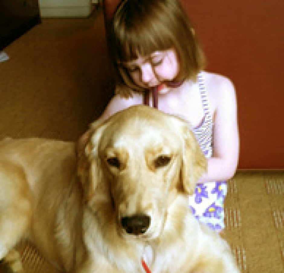 Ally has intractable generalized epilepsy, ASD, pika, and is developmentally delayed. Periwinkle (aka Perry) is a multipurpose service dog from 4 Paws for Ability that is trained for seizure alert, tracking, behavior disruptions, and tethering. She is able to detect a seizure by scent up to 10 hrs before one starts. When the seizure occurs, Perry barks to alert Ally's parents.